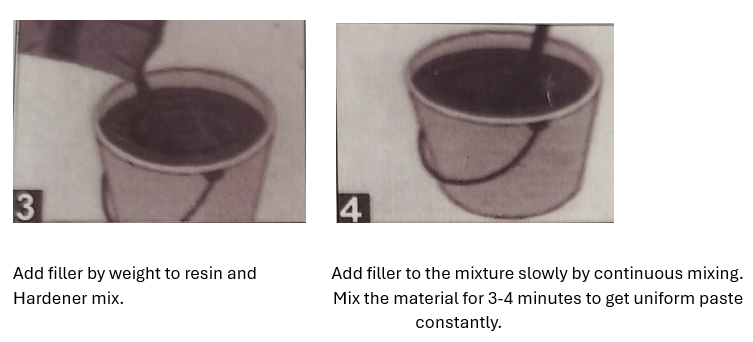 | Resin 200 gms + hardener 100 gms+ Filler 800 gms |